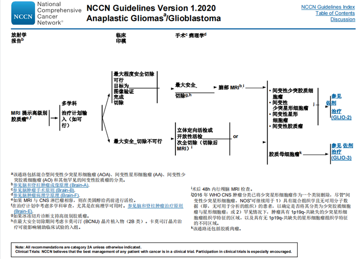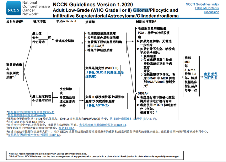 参考资料:NCCN 肿瘤临床实践指南(NCCN 指南)® .中枢神经系统肿瘤 .版本 1.2020—2020 年 3 月 10 日