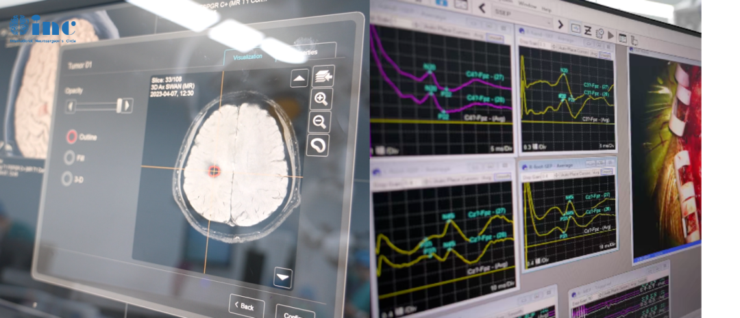 在术中导航和神经电生理监测下,手术在有条不紊地顺利进行中