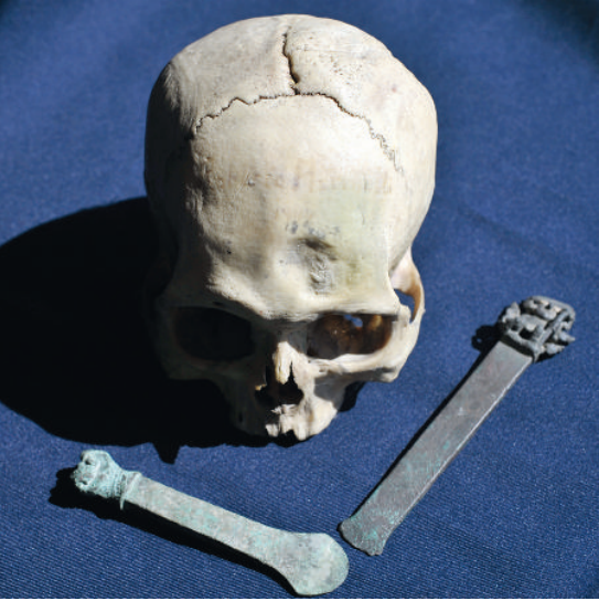 这枚颅骨上有一个光滑的洞,为了便于识别,考古学家将其命名为M392号颅骨。